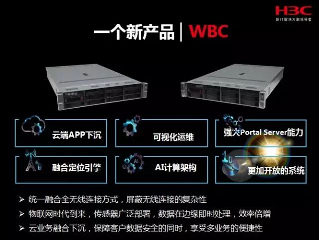 新華三在此次大會(huì)上,正式對(duì)外發(fā)布了WBC(Wireless Beneath Cloud Controller無線多業(yè)務(wù)控制器),作為新華三無線領(lǐng)域的重磅新品面向市場(chǎng),融合多種無線技術(shù),具備六大特性:云端APP下沉、可視化運(yùn)維、強(qiáng)大Portal Sever能力、融合定位引擎、AI計(jì)算架構(gòu)和更開放的系統(tǒng)。面對(duì)萬物互聯(lián)時(shí)代,傳感器廣泛部署,WBC不僅可以實(shí)現(xiàn)數(shù)據(jù)在邊緣即時(shí)處理,還可以使得效率倍增;此外,WBC還將運(yùn)維、認(rèn)證、位置大數(shù)據(jù)、SaaS應(yīng)用等業(yè)務(wù)下沉到網(wǎng)絡(luò)中,在保障客戶數(shù)據(jù)安全的同時(shí),更享受多業(yè)務(wù)處理的便捷性。